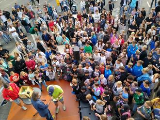 Neben „Schlag den Sportlehrer im Basketball“, dem „Goliath-Kicker“ für über 20 Mitspieler, einer „Baseball-Maschine“, einem fünf Meter hohen „Kletterpilz“ und „Mario-Kart“ am Active-Panel, gab es auch klassische Spiele wie Dosenwerfen, Tauziehen oder Dartwerfen. Im Schulgarten konnte einen Barfußpfad begangen, Gewichte geschätzt und sich über regional hergestellte Nudeln informiert werden.