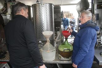 Gegen Mittag füllte sich das Betriebsgelände der Biskirchener Heilquelle mit den Lieferanten der Äpfel und den Interessierten, die den Pressvorgang beobachten wollten. Die eine oder andere regionale Köstlichkeit wechselte in dieser Zeit den Besitzer. In den Ruhepausen bot sich außerdem die Möglichkeit in der Lagerhalle der Live-Musik des Gesangs-Duos „Just for fun“ zu lauschen.