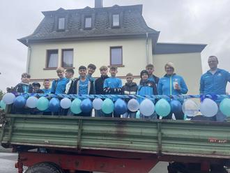 Uns ist auch die gemeinsame Zeit neben dem Trainings- und Spielbetrieb wichtig. Daher versuchen wir immer wenn es möglich ist uns in das Dorf- und Vereinsleben einzubringen. So nahmen wir am 20.10.2024 mit der JSG Lahn-Ulm am Kirmesumzug in Biskirchen teil. Der Kirmeswagen wurde bereits am 19.10.2024 geschmückt. Auf dem Wagen herschte beste Stimmung, hierfür sorgten die Jungs mit eigener Musik. Auch im Anschluss im Saal wurde noch gemeinsam gefeiert. Bedanken möchten wir uns bei unserem Fahrer Felix Zipp, der einspringen musste, da der gebuchte Fahrer Jan Theiss Kirmeswatz 2024 wurde. Auch Danke an Patrick und Christel Zipp für die tolle Blumendeko auf dem Traktor.
