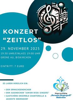 Noch nichts vor am 29. November? Dann folgt doch gerne unserer Einladung zum Konzert „Zeitlos“. An dem Abend werden wir von unserem Jugendchor sowie dem Ensemble Chanterelle und Akzente Oberndorf unterstützt.