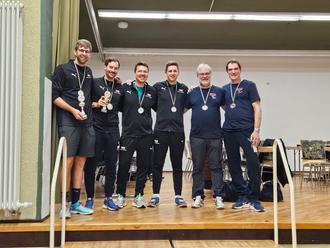 Von links: Christian Hubert, David Hartmann (TC Leun 3, Platz 1), Steffen Leyser, Oliver Pfeiffer (TC Leun 1, Platz 2), Jens Krombach und Ralf Boch (CVJM Leun 1, Platz 3)