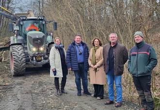 Auf gutem Weg befindet sich buchstäblich das Gemeinschaftsprojekt von Stadt Leun und Gemeinde Greifenstein. Bei einem gemeinsamen Ortstermin informierten sich Bürgermeisterin Marion Sander und Bürgermeister Björn Hartmann wie auch Bauamtsleiterin Yvonne Kumlehn-Berndt und Bauamtsleiter Stefan Putz über den Fortgang der vorbereitenden Arbeiten. Michael Junker, Revierförster von Greifenstein, hatte mit seinem Team den erforderlichen Freischnitt gesorgt, der nun eine bessere Sicht auf die vorhandene Strecke ermöglicht.