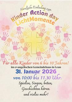 | 10.00 - 11.30 Uhr | Kinder Action Day im Gemeindehaus Leun |