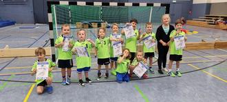 Stolz präsentieren die Midis vom SV Stockhausen ihre verdienten Urkunden und Medaillien, die sie beim Turnier in Rechtenbach gewonnen hatten.