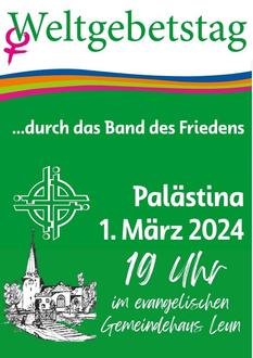 | 19.00 Uhr | Weltgebetsabend im Gemeindehaus Leun |