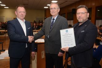 Stadtverordnetenvorsteher Jürgen Ambrosius, Bürgermeister Alexander Schneider, 1. Stadtrat Thorsten Keller