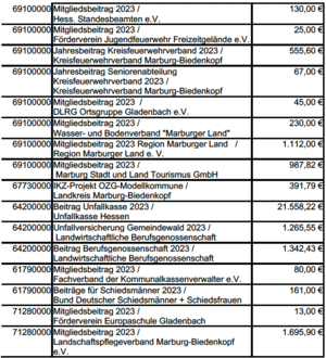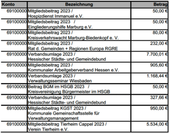 Die Gemeinde Lohra ist in folgenden Vereinen und Organisation Mitglied und zahlt dafür die angefügten jährlichen Mitgliedsbeiträge: