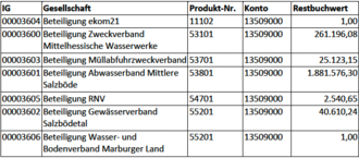 | 1) | In welchen o.g. Vereinen und Organisationen ist die Gemeinde Mitglied bzw. beteiligt? |