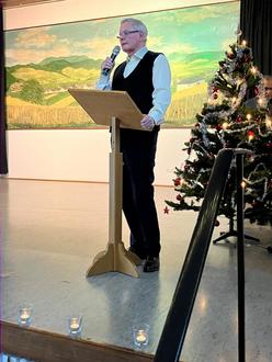 Am Ende des Programms angelangt, bedankte sich der Vorsitzende bei allen Gästen, bei den mitwirkenden Akteuren, allen Helfern und wünscht ihnen eine schöne Weihnachtszeit und lädt zum weiteren Verweilen ein. Schließlich überbrachte der Weihnachtsmann seine Weihnachtsgrüße und verteilte kleine Nikoläuse.