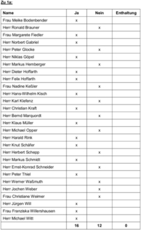Ja 16 Nein 7 Enthaltungen 5