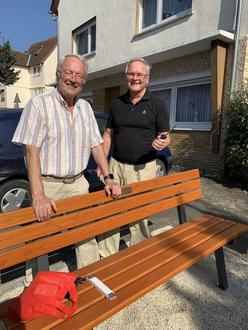 Werner Waßmuth und Wolfgang Zieske als Vertreter des Vereins haben vor wenigen Tagen die Sitzbank der Öffentlichkeit übergeben“.