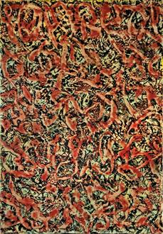 Ab den 1980ern nähert sich Grandmontagne ihrer Umwelt auf neue Weise. Sie druckt Naturstrukturen, Oberflächen und Bewegungen direkt auf Metallplatten – später auch auf dünne Bleibleche. Daraus entstehen poetische Spurenbilder, die Zeit, Veränderung und Vergänglichkeit sichtbar machen. Einige davon werden auf Leinwand weiterbearbeitet – ein spannendes Zusammenspiel von Druck und Malerei.