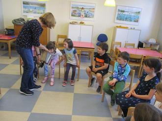 Im Rahmen meiner Erzieherausbildung im Kindergarten habe ich mich für das Projekt „Bienen“ entschieden, da ich selbst Jungimkerin bin. Anfang Mai startete ich die Angebote mit den Kindern. Es ist wichtig, schon früh auf kindgerechte Art und Weise das Bewusstsein über die Bedeutung der Biene für unser Ökosystem zu vermitteln. Gemeinsam untersuchten wir schon den Körperbau der Biene, lernten bienenfreundliche Pflanzen kennen und schauten uns an wie der Honig von den Bienen gewonnen wird. Im Rahmen des Projektes besuchte die Imkerin Frau Traving-Ney den Kindergarten und zeigte den Kindern anhand von mitgebrachten Materialien, was ein Imker zum Arbeiten am Bienenstock benötigt. Außerdem brachte sie ausgeschnittene, mit Honig gefüllte Bienenwaben mit, die sich die Kinder anschauen konnten. Die Bienenwabe ist ein von Honigbienen errichtetes Wabengebilde mit sechseckigen Zellen, in denen sie den Honig lagern. Die Kinder waren begeistert und durften den frischen Honig direkt aus der Wabe heraus probieren. In der Bienenhaltung ist mit der Wabe ein bewegliches Holzrähmchen gemeint, in denen die Bienen die eigentliche aWabe bauen. Um die Bienen zu unterstützen werden Wachsplatten in diese Holzrahmen eingesetzt. In Dreiergruppen durften die Kinder nacheinander mit Hilfe von Imkerin Frau Traving-Ney, die Wachsplatten in die mit Draht versehenen Rahmen löten. Für die Kinder war dies eine tolle Erfahrung, dass die Imkerin selbst alles rund um die Biene mit ihrem Zubehör erklärt hat. Ich bedankte mich deshalb recht herzlich bei Frau Traving- Ney vom Dillinger Imkerverein.