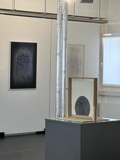 Christiane Mewes hat ihren eigenen Weg gefunden. Sie arbeitet ebenfalls mit dem Material Papier, aber sie stellt andere, für unsere Alltagserfahrungen völlig ungewohnte Eigenschaften des Materials in den künstlerischen Vordergrund. Durch Bearbeiten von schwarzem Fotokarton mit Graphitstiften oder Farbkreiden schafft sie es, einzelne Strukturen aus den Faserschichten des Kartons herauszulösen. So wird das flache Papier zum Relief. Es entstehen Spiralformen, grafische Strukturreihen, bauchige Aufwölbungen und viele ungewöhnliche Gestaltungsformen. Das schwarze Material gibt den Arbeiten etwas Geheimnisvolles, Feierliches.