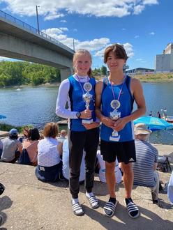 Für eine Überraschung sorgte sie im Kanuzweier mit Nora, die ein Jahr höher startete. Die beiden gewannen die Bronzemedaille auf 500m.