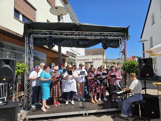 Bei strahlendem Sonnenschein wurden u.a. Gesangsstücke wie „Oh du schöner Rosengarten“, „Griechischer Wein“, „99 Luftballons“ und „Lebe, liebe lache“ vorgetragen. Auf besonderen Wunsch unseres Vereinswirtes Oskar haben wir extra für ihn sein Lieblingslied „Das Morgenrot“ einstudiert.