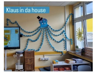 Am Mittwoch, 03.09.2025 durften die Erstis der Klasse 1c einen ganz besonderen neuen Begleiter kennenlernen: Klaus der Octopus!