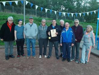 In vier Spielrunden ermittelten die Teilnehmer den diesjährigen Vereinsmeister. Im Verlauf der teilweise sehr spannenden Spiele zeichnete sich ein Kopf an Kopfrennen von vier Spielern ab. Am Ende hatten diese vier Spieler jeweils drei Siege auf ihrem Konto. Nun musste die Anzahl der erspielten Minuspunkte die Entscheidung bringen. Mit 25 Punkten hatte unser Sportkamerad Manfred Feilen die Nase vorn. Er errang somit den ersten Platz und damit die Vereinsmeisterschaft 2022. Bei der Siegerehrung überreichte der Abteilungsleiter dem verdienten Sieger als Anerkennung eine Urkunde und etwas zum Anstoßen auf den Sieg.