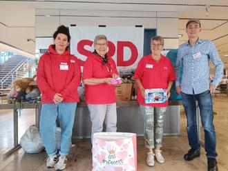 Beim Herbst-Termin des SPD-Kindergebrauchtkleidermarktes Dillingen war der Spendentisch diesmal für den AWO-Kreisverband aufgestellt. Viele der AnbieterInnen legten nicht verkaufte Kinder- Kleidung, Spielsachen etc. auf 2 Tischen ab. Ein buntes Sortiment war zusammen gekommen. Andrea Martin, Ehefrau des Kreisvorsitzenden Hans Martin kam selbst vorbei und freute sich über einen anschließend gut gefüllten PKW-Kombi. Sie bedankte sich beim SPD-Stadtverband für die Organisation und beide bedanken sich ganz herzlich bei allen Spenderinnen und Spendern. Alles wird einer weiteren Verwendung zugeführt!