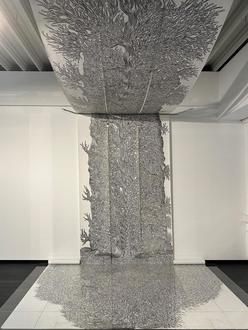 er Region Grand-Est konnte der Kunstverein Dillingen bei seiner zweiten Ausstellung dieses Jahres begrüßen. Unter dem Ausstellungstitel „Dessiner pour voir“ zeigen bis zum 20. November die beiden Künstlerinnen Isabelle Cridlig und Odile Villeroy de Galhau Werke zum Thema „Natur.“ Odile Villeroy zeigt sensibel gezeichnete Landschaftsausschnitte und Druckgrafiken, deren Naturausschnitte fast surrealistisch wirken. Isabelle Cridlig interessiert sich vor allem den Mechanismus der Natur. Aus einem Kern entstehen immer neue Variationen. So wird die Spirale zum Sinnbild vieler Dillinger Werke. Spektakulärste Arbeit ist eine Zeichnung eines Baumes, die aus einer einzigen, mehr als drei Kilometer langen Linie besteht (siehe Abbildung).