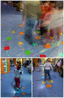 Im Rahmen des Schulprojekts „Bewegte Schule“ nimmt das Kollegium der Philipp-Schmitt-Schule regelmäßig an diesbezüglichen Fortbildungsveranstaltungen teil und die Multiplikatorinnen des Projekts, Frau Hirschauer, Frau Jacobs und Frau Wilhelm, stehen im Austausch mit Schulen, die sich zu dem Thema bereits auf den Weg gemacht haben. So inspiriert, entstehen ständig neue Ideen, wie wir an unserer Schule das Thema, auch kostengünstig und mit vorhandenen Mitteln, umsetzen können. Dazu gehören die neuen Bewegungsparcours in den beiden Fluren der Schule, bei deren Ausführung wir von der Erfahrung unserer Schulsekretärin Frau Bollbach mit dem Plotter profitieren konnten.