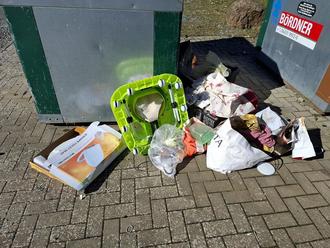 In jüngster Vergangenheit wurde wieder erheblicher Müll im Bereich der Glascontainer am Bürgerhaus in unserem Ortsteil Winkels abgelagert (siehe Beispielbild).