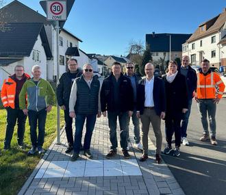 Gemeinsam mit ortsansässigen Mandatsträgerinnen und Mandatsträgern, dem beauftragten Ingenieurbüro Artec, dem ausführenden Unternehmens Reuscher sowie der Unteren Wasserbehörde wurde die Klingelbachstraße inkl. Klingelbachverrohrung und das Regenrückhaltebecken im Bereich des Neubaugebietes Am Hasenmorgen freigegeben.