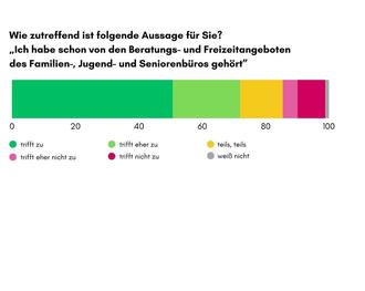 Die Frage, ob das Familien-, Jugend- und Seniorenbüro bekannt ist, wurde von einem ganz überwiegenden Teil der Befragten positiv beantwortet