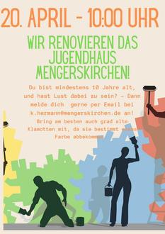 sicher hat der Ein oder Andere schon gesehen, dass in Mengerskirchen fleißig renoviert wird! Wir bekommen ein neues Jugendhaus und wollen natürlich, dass Ihr von Anfang an dabei seid!