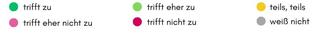 Für die Auswertung der gestellten Fragen gilt wieder die bekannte farbliche Zuordnung: