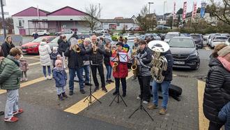 Der Bürgermeister, mehr Kinder und vor allem mehr Eltern als gewettet waren an diesem Tag dort. Sogar das Blasorchester Winkels hat uns unterstützt.