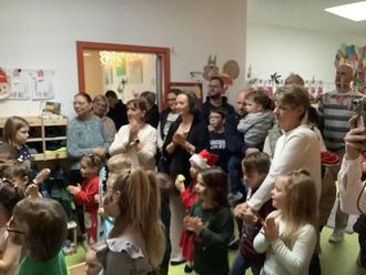 Viele Familien folgten freudig der Einladung zu unserer kleinen Adventsfeier am 15. Dezember 2023 und kamen am Nachmittag in die Kita. Nach einem fröhlichen Auftritt der Kinder und der darauffolgenden Überraschung - ein Besuch vom heiligen Nikolaus, der noch leckere Äpfel und Mandarinen mitbrachte, sangen wir alle noch gemeinsam Weihnachtslieder und ließen unsere gemütliche Feier bei leckerem Kakao, Kaffee und Kuchen ausklingen. Vielen lieben Dank an alle fleißigen Helfer, den Elternbeirat, der uns bei den Vorbereitungen zur Seite stand und den lieben Nikolaus, unseren Überraschungsgast.