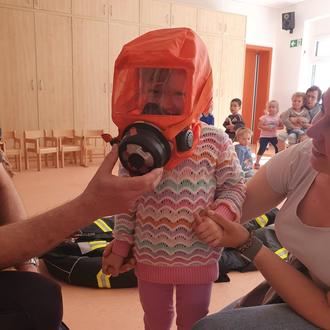 Auch die jüngeren Kinder, die im Kindergarten geblieben sind, bekamen Besuch von den Feuerwehrleuten. Dort erklärten sie den Kindern wie sie sich im Notfall/Brandfall verhalten sollen. Die „Kleinen“ konnten sich ebenso die Feuerwehrausrüstung anschauen.