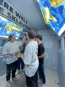 Der missio-Truck mit dem Thema „Eine Welt. Keine Sklaverei“ war zwei Tage zu Besuch an der Westerwaldschule Waldernbach. Der Truck bietet, geführt durch eine virtuelle Figur, einen 25-minütigen Rundgang durch fünf thematisch gestaltete multimediale Räume. Die Schülerinnen und Schüler der 8. und 9. Klassen erkundeten interaktiv die Hintergründe der modernen Sklaverei. Dabei standen u. a. die Themen der Teeplantagen in Indien oder die Ausbeutung auf Kreuzfahrtschiffen auf dem Programm. Abgerundet wurde die gelungene Veranstaltung durch eine ergänzende Unterrichtsstunde.