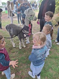 Ein besonderes Highlight war der Besuch von zwei Alpakas, die nicht nur die Kinderherzen höherschlagen ließen, sondern auch die Erwachsenen begeisterten. Die beiden Tiere zauberten vielen ein Lächeln ins Gesicht und boten den Kindern die Gelegenheit, Alpakas aus nächster Nähe zu erleben.