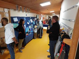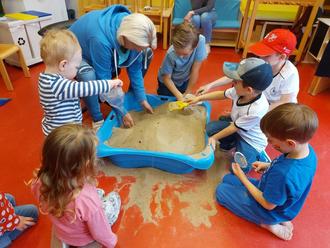 Das Fest wurde mit einem Tanz und mit einem Bewegungslied eröffnet. Nach der Begrüßung ging es an die Spielstationen. Die Kinder konnten mit ihren Familien im Sand einen Schatz suchen, einen Bewegungsparcours durchlaufen und an einem „XXL-Angelspiel“ mitmachen und ihre Geschicklichkeit unter Beweis stellen. In einer Ausstellung wurden wunderschöne Kinderbilder und andere gebastelte Werke zum Thema „Unter dem Meer“ präsentiert. In der Mensa des Kindergartens wurde ein von den Vorschulkindern produzierter „Stopp Motion Film“ zum Buch: „Regenbogenfisch“ gezeigt. Zudem hatten die Kinder noch die Möglichkeit Leinwände mit Sand, Muscheln und anderen Materialien zum Thema zu gestalten. Ein weiteres Highlight war natürlich das Kinderschminken. Für das leibliche Wohl war ebenfsalls bestens gesorgt. Viele Familien haben sich beteiligt und einiges für das Buffet mitgebracht, so dass jeder etwas Leckeres finden konnte.