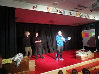 Zum Abschluss wünschten die Gäste in der morgendlichen Schulversammlung noch viel Erfolg und gute Ergebnisse! Wenn das Wetter mitspielt und es endlich losgeht mit den Bundesjugendspielen!