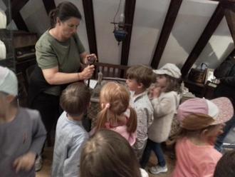 Gemeinsam mit ihren Lehrkräften erkundeten die Schüler/innen das Museum. Zu ihrer Überraschung wurden sie von ganz besonderen Führern empfangen: Die Museumskinder mit ihren Betreuerinnen übernahmen mit viel Stolz und Wissen die Führung durch die historischen Räume des Museums. Ein Jahr lang hatten sie sich im Rahmen eines Projekts „Museumspädagogische Frühförderung“ intensiv mit der Geschichte der Region und dem alten Handwerk beschäftigt. Nun konnten sie ihr Wissen eindrucksvoll unter Beweis stellen.