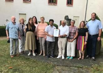 Das Steuerungsteam hatte sich fast vollständig am Mathildenbrunnen eingefunden. Die Urkunde hatte sich verspätet und einige Fototermine waren inzwischen nicht zu Stande gekommen. Aber die Freude über die erneute Titelerneuerung war trotzdem groß.