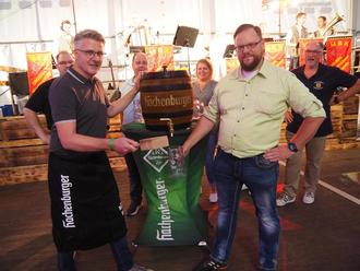 Ortsvorsteher Chris ten Elsen eröffnete die Kirmes mit dem Fassbieranstich. Er benötigte nur einen Schlag.