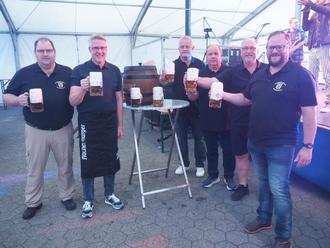 Die Vertreter der Kirmesgesellschaft und Ortsvorsteher Chris ten Elsen eröffneten offiziell die Kirmes mit dem Fassbieranstich.