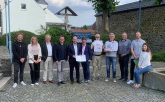 Überreichung der Zuwendungsbescheide aus dem Dorfentwicklungsprogramm am Magdalenenplatz in Mengerskirchen (von links): Timo Linn und Sarah Wisser von der Gemeindeverwaltung, Erster Kreisbeigeordneter Jörg Sauer, Landtagsabgeordneter Tobias Eckert, der Mengerskirchener Bürgermeister Daniel Melchert, Landtagsabgeordnete Marion Schardt-Sauer, Achim Peters (Steuerungsgruppe), Ortsvorsteher Christian ten Elsen, Meik Prielipp (Steuerungsgruppe) sowie Moritz Ruoff und Rabia Özcelik vom Amt für den Ländlichen Raum, Umwelt, Veterinärwesen und Verbraucherschutz der Kreisverwaltung.