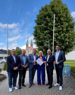 Die Gemeinden Hofbieber und Mengerskirchen gehen diesen Schritt nun gemeinsam. Für das Vorhaben erhalten die Gemeinden 509.000 Euro aus der Förderung smarter Kommunen und Regionen im Programm „Starke Heimat Hessen“. Im Rahmen ihrer Sommerreise überreichte Digitalministerin Prof. Dr. Kristina Sinemus heute den Förderbescheid an Markus Röder, Bürgermeister von Hofbieber, und Daniel Melchert, Bürgermeister von Mengerskirchen.
