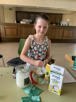 Bei den Spiel- und Basteltagen kamen kleine und große Bastelfreund*innen voll auf ihre Kosten. Jessika Dammer vom Jugendhaus Mengerskirchen hatte gemeinsam mit dem Team des Familienbüros ein vielfältiges Spiel- und Bastelangebot für Kinder im Alter von 5 bis12 Jahren zusammengestellt. Besonders viel Spaß hatten die Kinder bei Herstellung von Knete und Badebomben sowie bei Spielen mit dem Schwungtuch und dem interaktiven Rollenspiel „Werwölfe“.