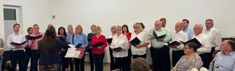 Nach dem Gottesdienst verabschiedeten sich viele Gemeindemitglieder bei einem kleinen Umtrunk persönlich von ihrem Pfarrer. Auch der Gesangverein ließ sich nicht nehmen, ein Abschiedsständchen im Pfarrheim zu geben.