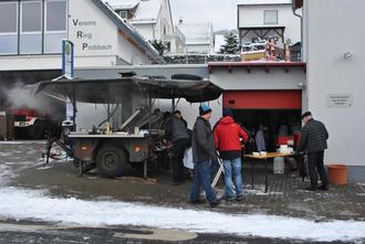 Am dritten Wochenende im Januar ist in Probbach das örtliche Schlachtfest fest im Kalender vorgemerkt. Zwei Jahre machte Corona den Ausrichtern einen Strich durch die Rechnung. In diesem Jahr aber war es wieder soweit. Die Freiwillige Feuerwehr und der Sportverein luden an das Feuerwehrgerätehaus in der Ortsmitte ein. Rund 30 Helfer*innen und drei Tage Vorbereitungszeit brauchte es, bis die deftigen Leckereien verzehrfähig angeboten werden konnten. Von elf bis 18 Uhr hieß es dann: Es ist angerichtet. Es ging zwar vornehmlich ums Essen, aber das gemütliche Beisammensein kam auch nicht zu kurz. Vor allem wenn, wie in diesem Jahr, auch die Witterung mitspielte. Zu einem Schlachtfest gehören eben auch etwas Schnee und Frost. Dann schmeckt es besonders gut.