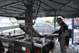 Seit rund zehn Jahren wird dieses Dorffest ausgerichtet. Die Organisatoren legen Wert auf die Feststellung „traditionelles Schlachtfest“. Auf den Teller kommt das, was früher auch bei Hausschlachtungen gereicht wurde. Dabei darf ein Kessel mit Wurstsuppe nicht fehlen. Daneben standen bei dem diesjährigen Schlachtfest auch Schlachtplatte, Hackbraten, Bratwurst sowie Blut- und Leberwürste auf der Speisekarte. Für den kalorienbewussten Gast gab es sogar Schlachtplatte light. Kein Wunder, dass der Zuspruch aus dem Ort groß war. Aber auch aus den umliegenden Dörfern Winkels, Dillhausen und Obershausen reisten hungrige Mäuler an.
