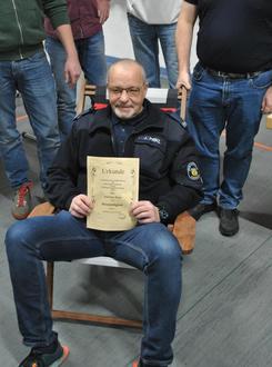 Abschließend standen zahlreichen Ehrungen auf der Tagesordnung. Hervorzuheben ist dabei die Auszeichnung für Feuerwehr-Urgestein Joachim Prinz, der ob seiner langjährigen Verdienste zum Ehrenmitglied ernannt wurde. Neben einer Urkunde überreichte ihm die Wehr einen Liegestuhl, was aber nicht bedeuten soll, dass er sich schon aufs Altenteil zurückziehen darf. Der Vorsitzende Steger zeichnete dann zunächst Aktive aus. Für zehn Dienstjahre ging die bronzene Ehrennadel an Nils Becker, Sarah Michler, Ramona Pager, Jonathan Radu, Cedric Ruckes, Linus Scherer, Hannah Schimmel, Michael Strieder, Lucy Wagner, Steven Wagner und Birgit Wiesemeyer. Für 20 aktive Jahre nahmen Christopher Linn und Kevin Steger die Nadel in Gold entgegen. Urkunden für langjährige passive Mitgliedschaft nahmen Alfred Hannes, Uwe Michler (40 Jahre). Peter Michler, Karl Heinz Schäfer (50 Jahre) sowie Albert Diehl und Gerhard Diehl (60 Jahre) entgegen.