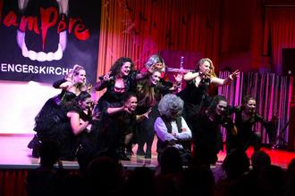Das Mengerskirchener Faschingskomitee mit einem Auftritt in Vampirverkleidung zeigte dem Publikum die Zähne.
