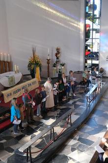 Im Zuge der Fürbitten baten die Kinder vor allem für Fairness, Nachhaltigkeit, Gerechtigkeit und Frieden in der Gemeinde und auf der Erde. Eine brennende Sorge der Jüngsten um die aktuelle Weltlage war den Fürbitten hörbar anzumerken.